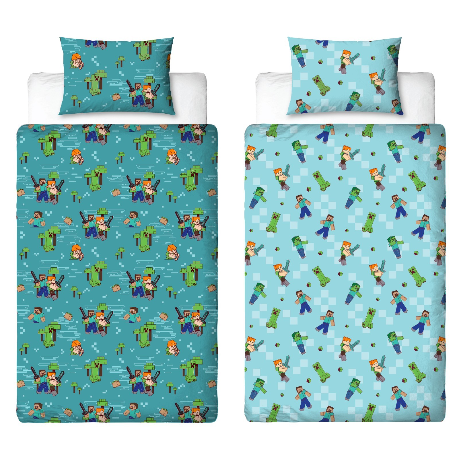Official Minecraft Single Coverless Duvet Bedding - Care Free Reversible Mixed Up Design Coverless Quilt & Pillowcase - Washable Duvet - Perfect For Travelling & Sleepovers, Minecraft 10.5 tog