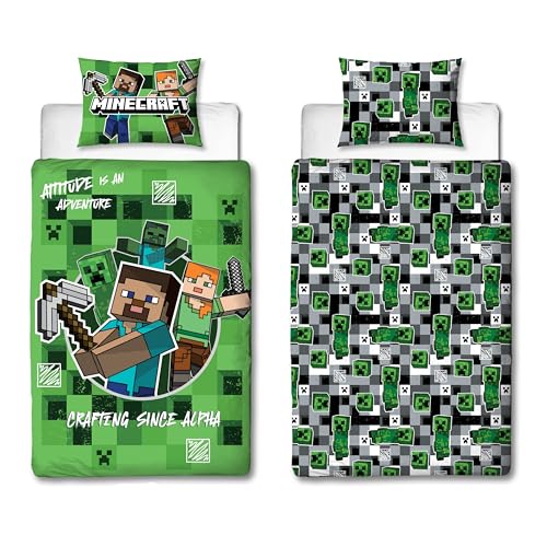 Get Trend Minecraft Single Duvet Cover Set Kids & Teens, Bedding & Pillowcase for Boys & Girls, Reversible Bedroom Accessories, Anime Gifts for Boys (Green Minecraft)
