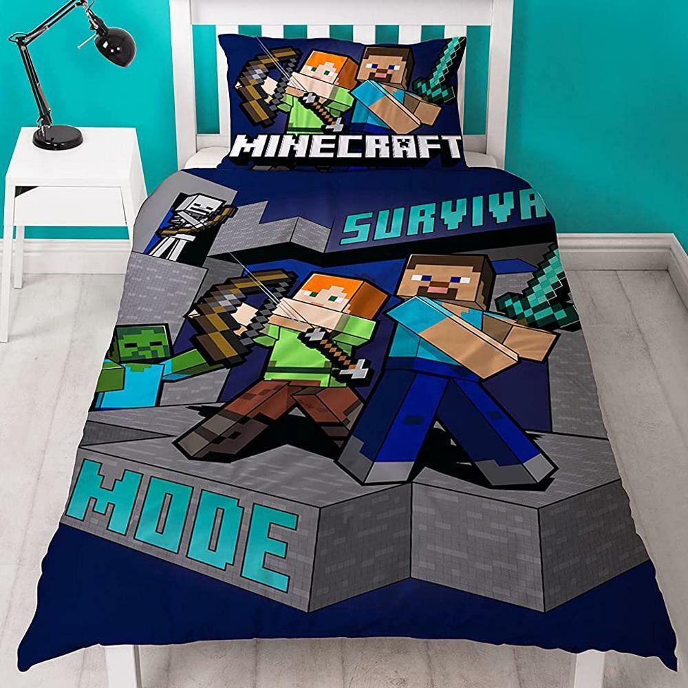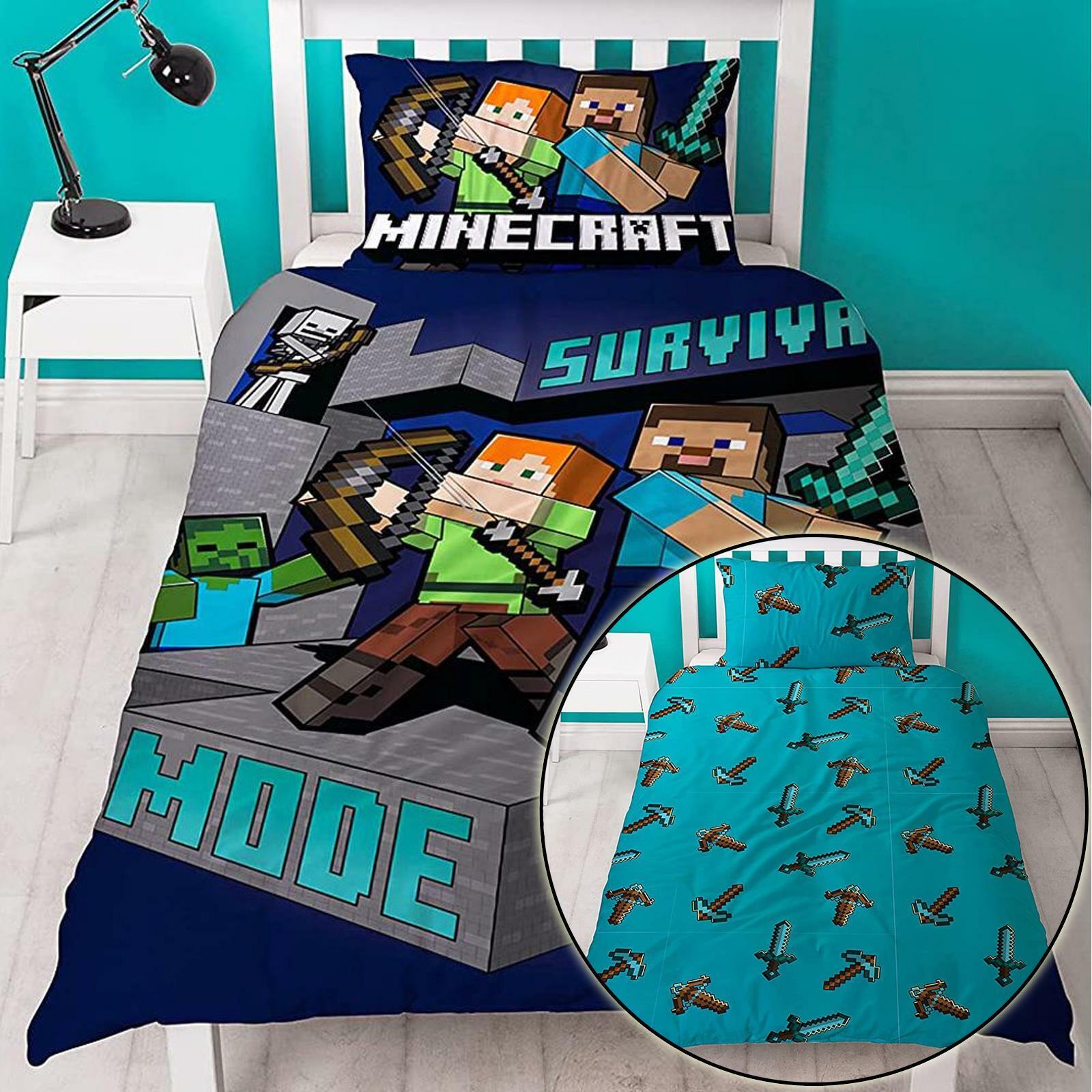 Minecraft Single Duvet Cover Set 2-in-1 Designs Bedding Survival Mode Gamers