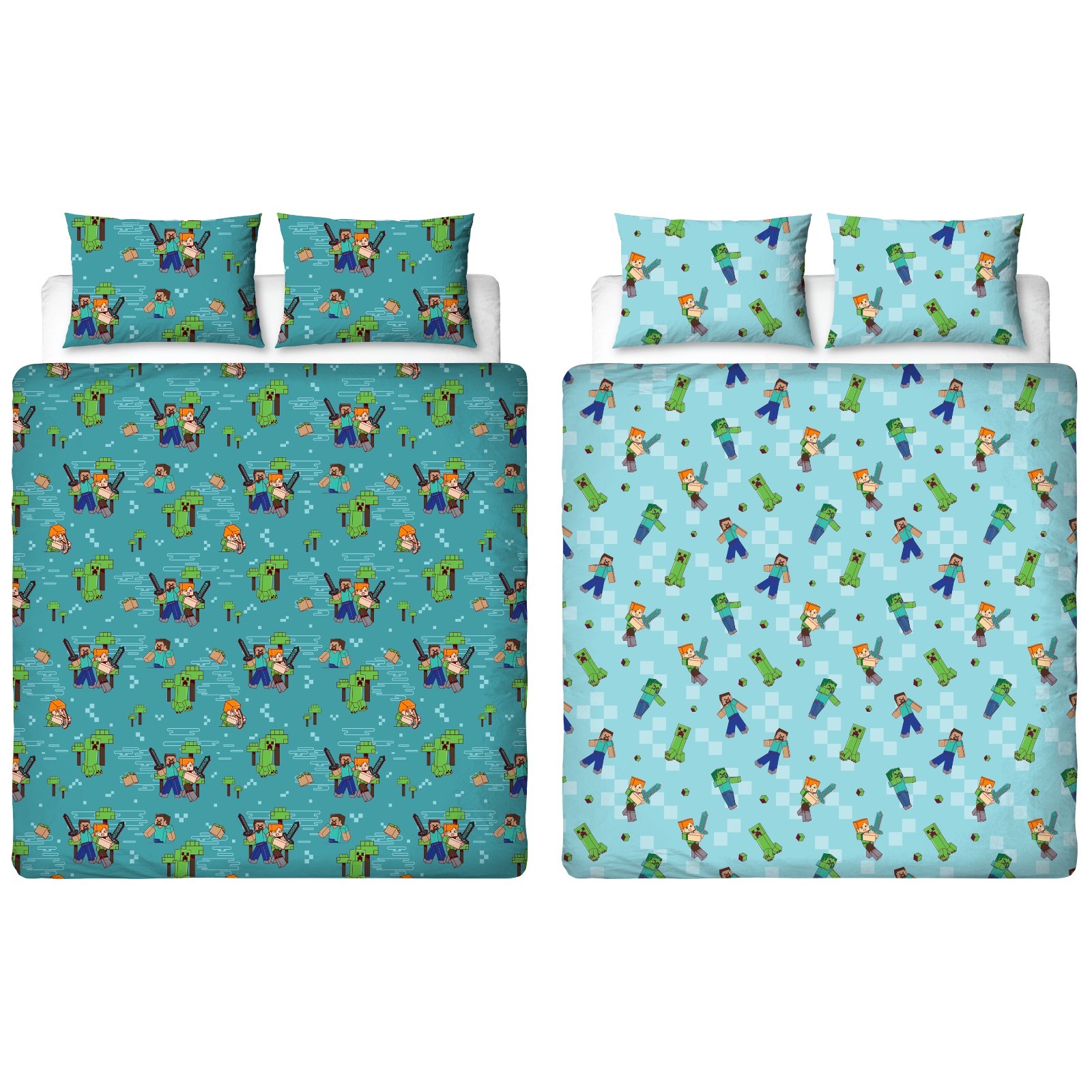 Minecraft Double Duvet Kids Reversible Bedding Set Creepers Teal Quilt Cover