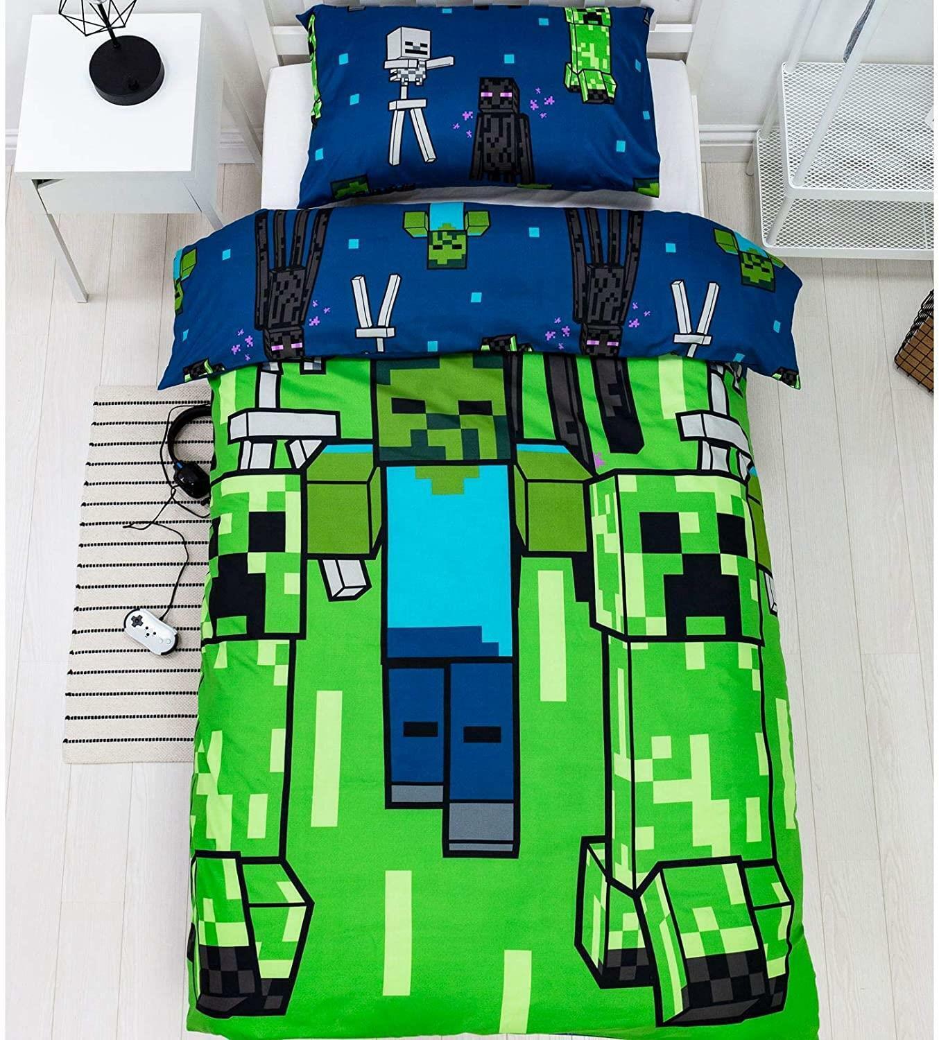 Minecraft Single Duvet Kids Reversible Bedding Blue Creepers Quilt Cover