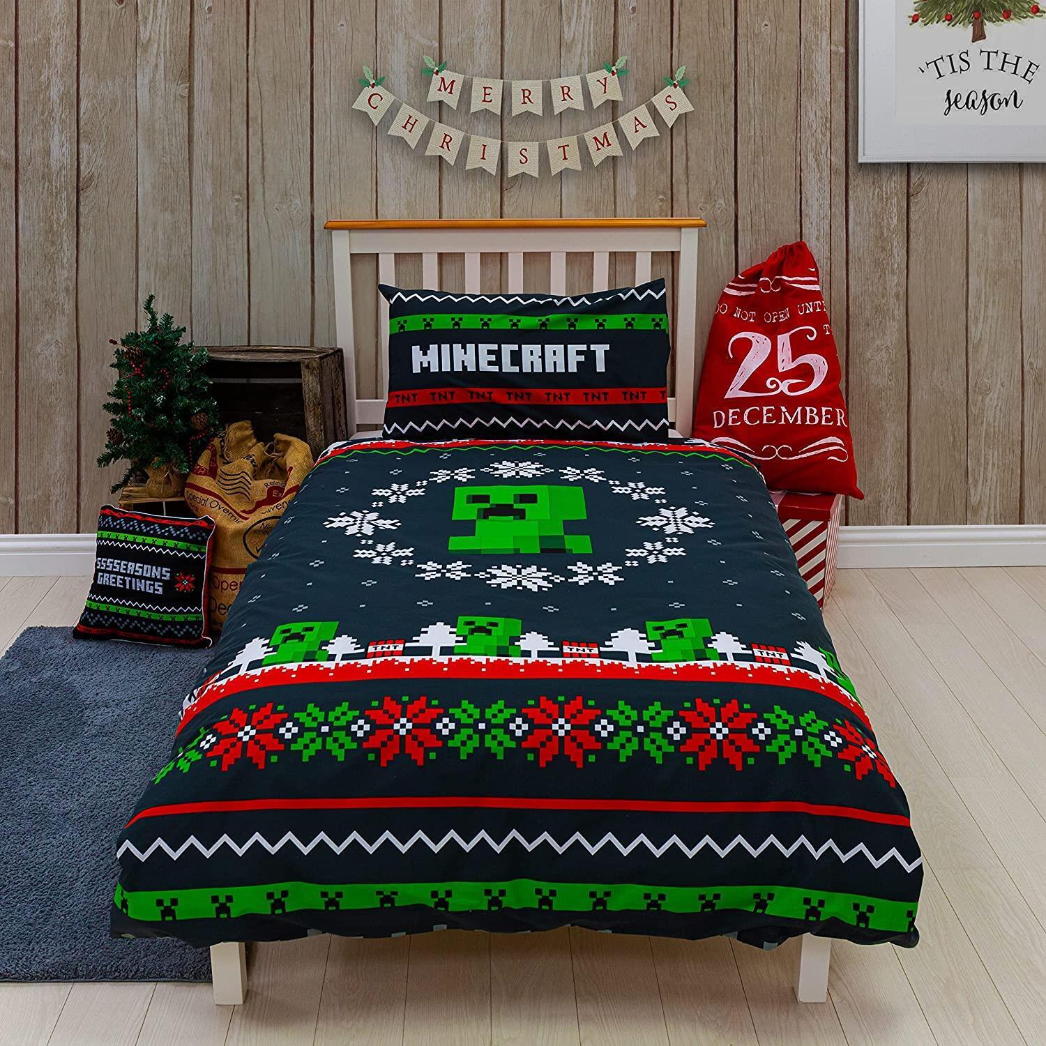 Official Minecraft Greetings Single Panel Duvet Reversible Christmas Bedding Set