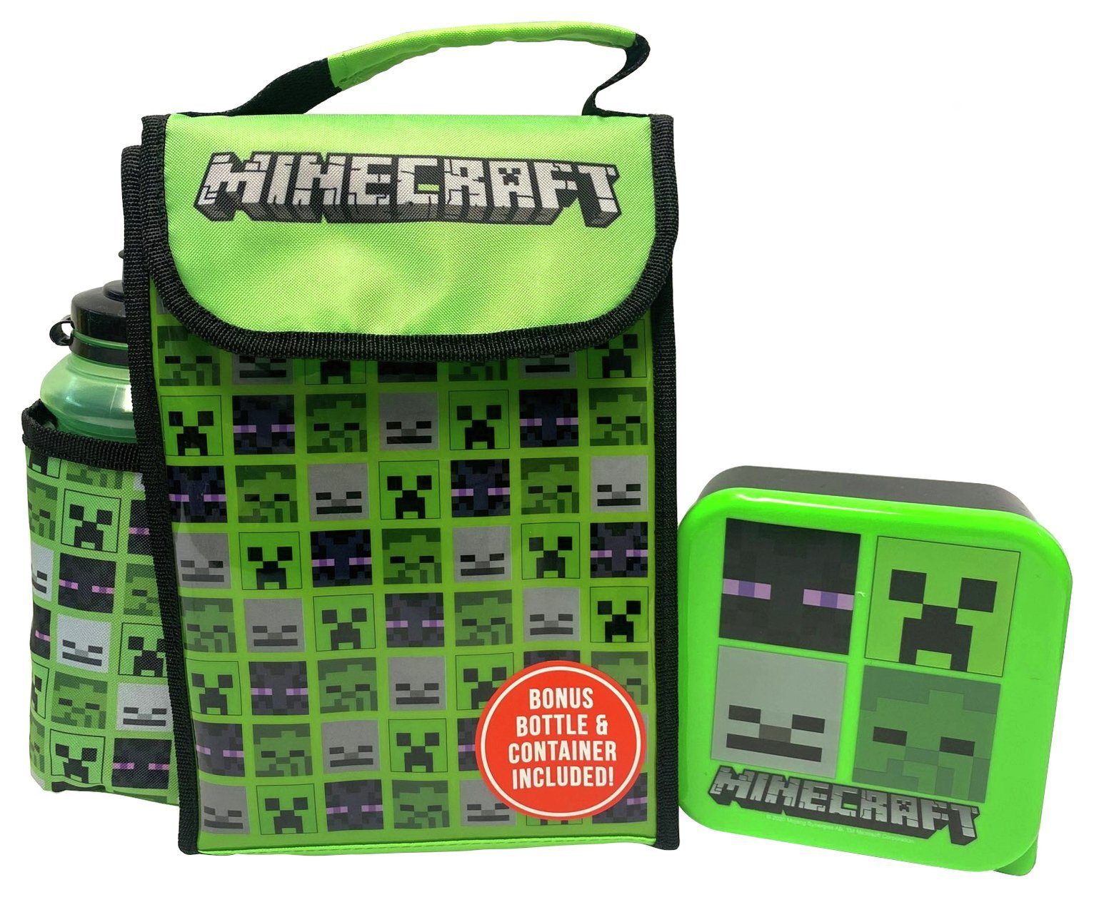 Minecraft Lunch Bag Bottle and Snack Pot (Boys Green)