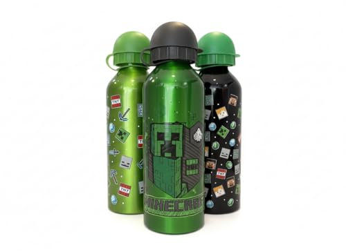 Minecraft Aluminium Water Bottle Set – Pack of 3 Assorted Designs, 500ml Leak-Proof Screw Cap, BPA-Free, Lightweight & Durable for Kids, School, Sports, Travel