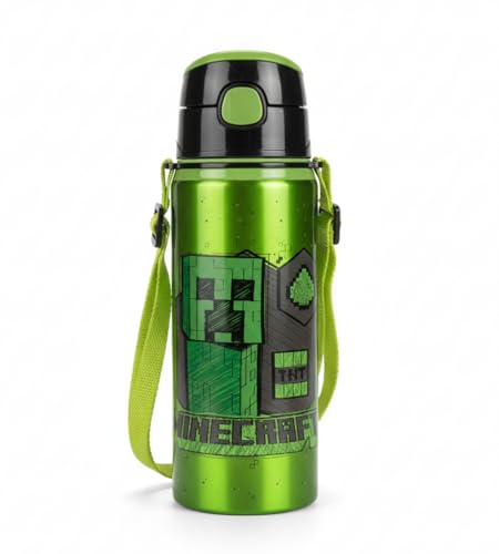 Minecraft - Water Bottle Stainless Steel with Green Creeper Design Kids Bottles, Reusable 750 ml