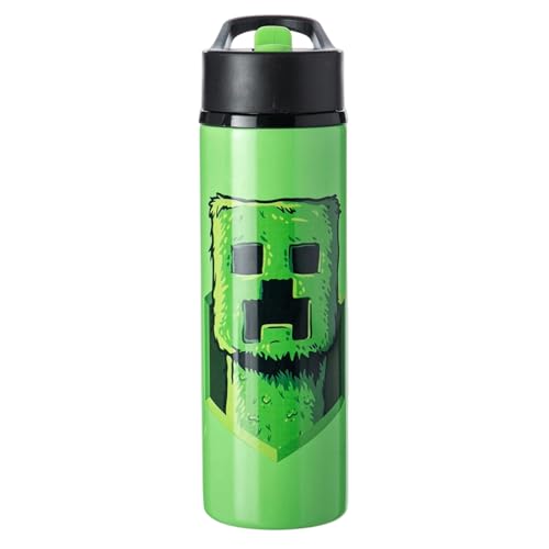 HOX Minecraft Creeper Steel Water Bottle 750ml - Lightweight Steel Sports Drinks Bottle with Flip-Top Spout - Leak Proof + Carry Handle, Green