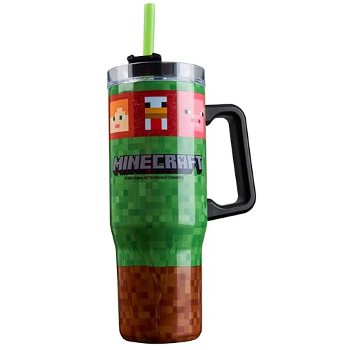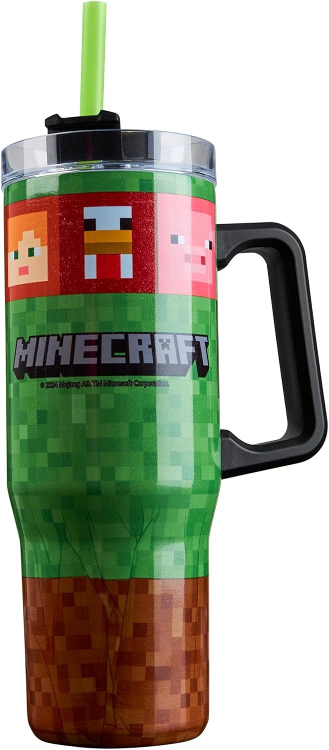 Minecraft 1.2L Insulated Tumbler Mug - Cold 17Hrs - Hot 5Hrs - Straw & Lid | Leak Proof Travel-Mug | Stainless Steel Vacuum Insulated Water Bottle with Handle, Green