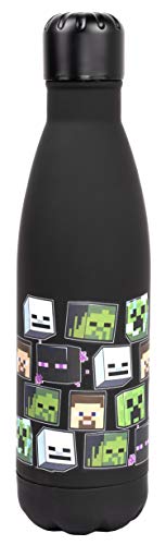 Puckator Minecraft - Stainless Steel Water Bottle with Led Temperature Display - Cold for 24h and Hot for 6h - Metal Water Bottles with Faces - Modern Thermos Flask - Bpa Free - 450 ml