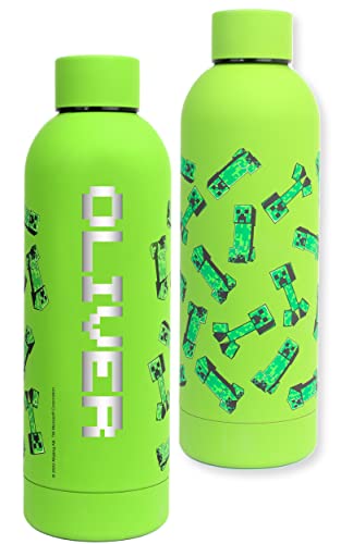 Minecraft Personalised Kids' Stainless Steel Leakproof BPA Free 700ML Green Water Bottle