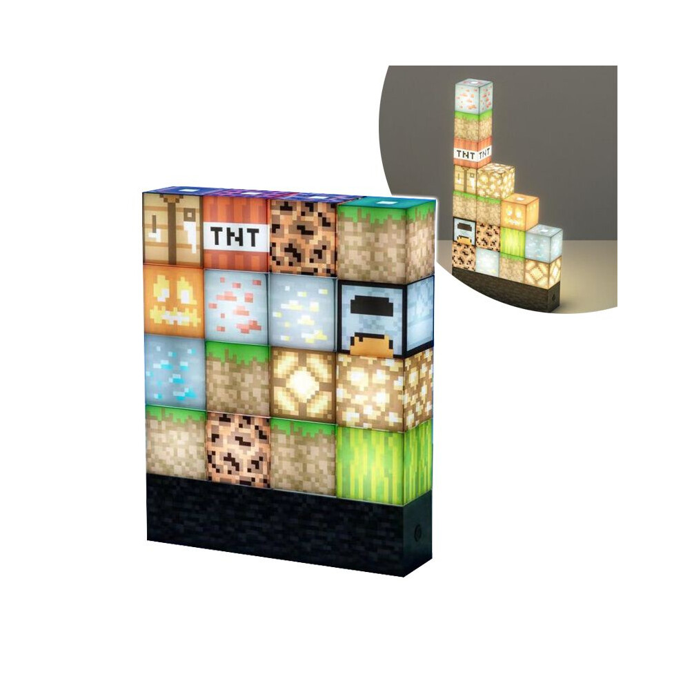 Minecraft Block Building Lamp - 16 Rearrangeable Light Blocks - Mood Lighting for Kids Room