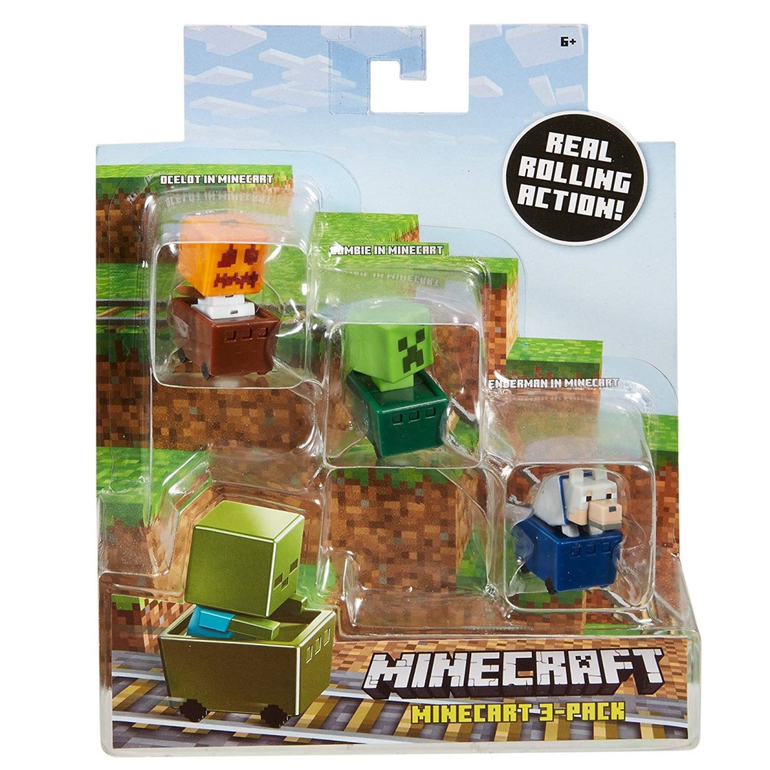 Minecraft FFK79 Minecart 3 Pack of Snow Golem, Wolf and Creeper Toy Figures