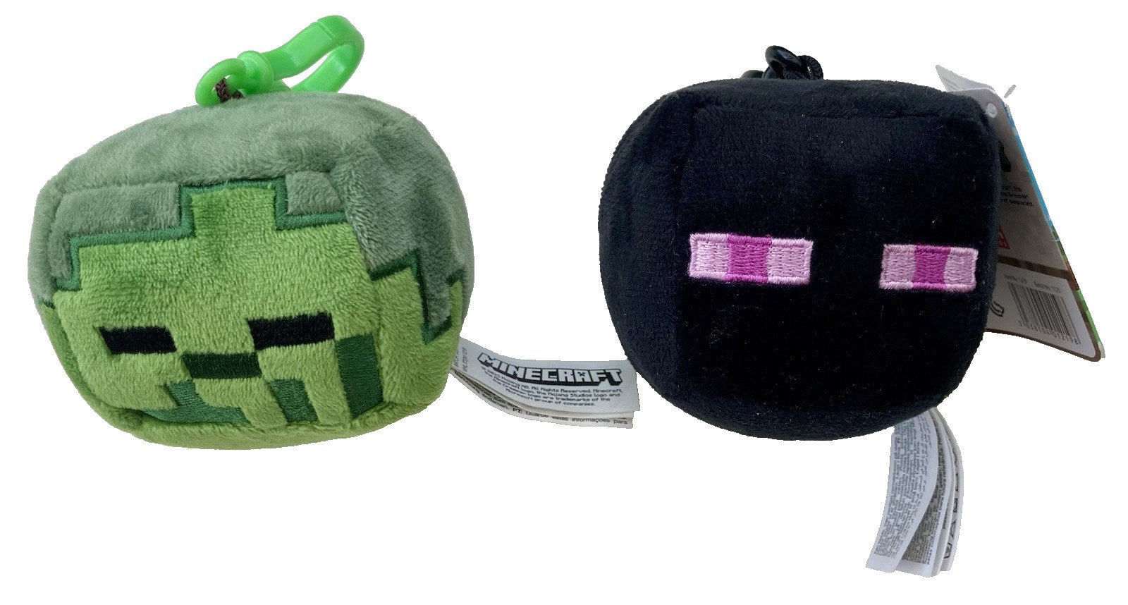 2 x Minecraft Keychain Clip Squishy Soft Toy Cube Mascot Plush Enderman &Creeper