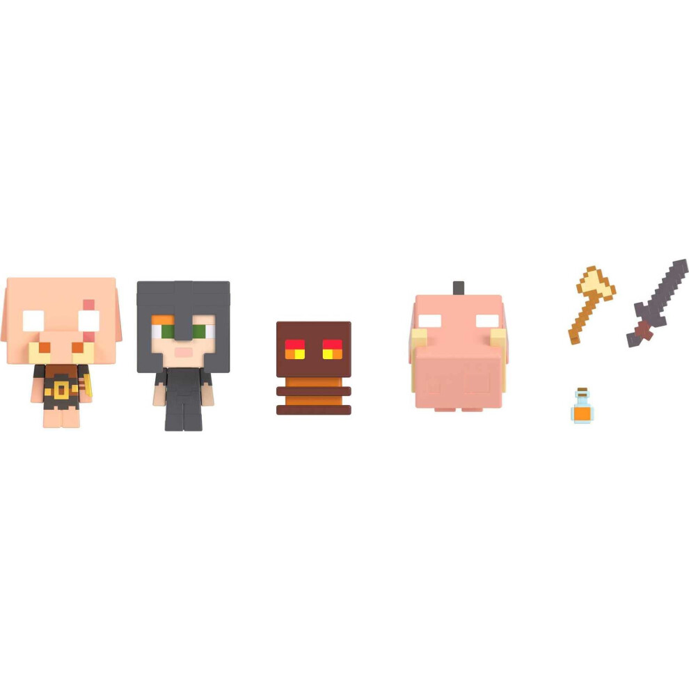 Minecraft Toys | Mob Head Mini Set with 4 Figures and Accessories | Nether Fire Battle Set | Collectible Gifts for Kids, HKR59