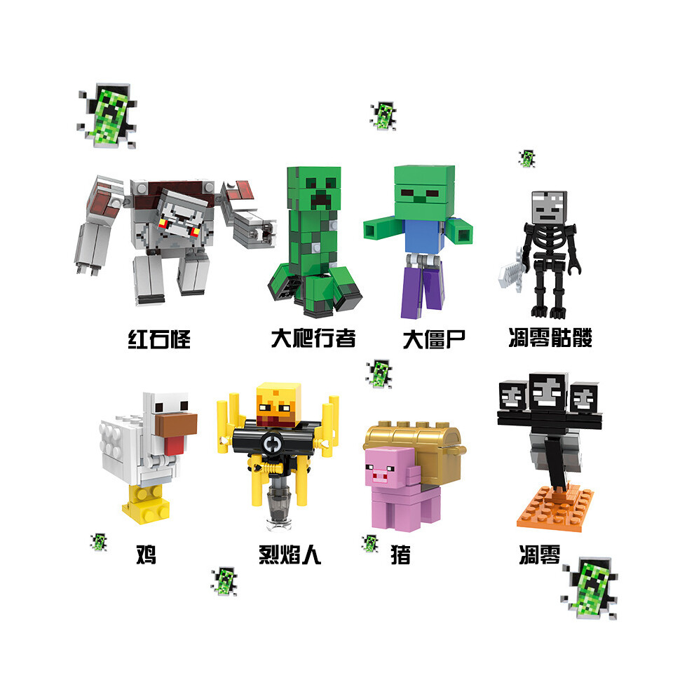 (As show, One size) 8pcs/set Minecraft Minifigure Assembled Mini Building Block Figures Toy Gift