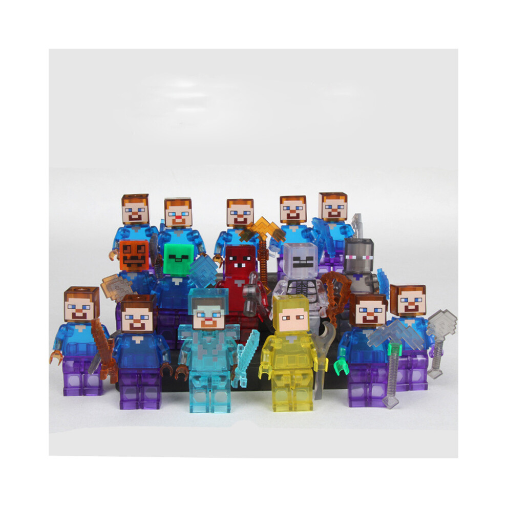 16 Pcs Minecraft Crystal Mini Figures Set Building Blocks Collection Toy Gift for Kids Boys Girls