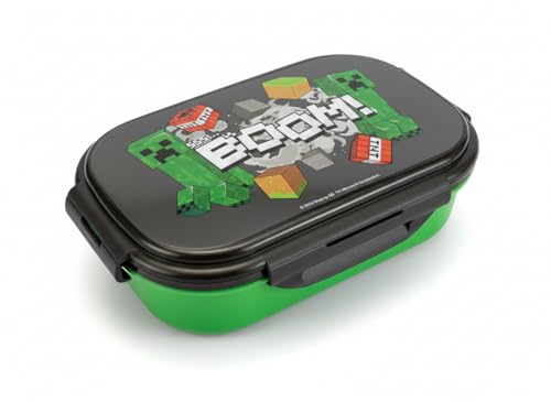 Puckator Minecraft Creeper & TNT Clip Lock Stacked Bento Lunch Box with Cutlery