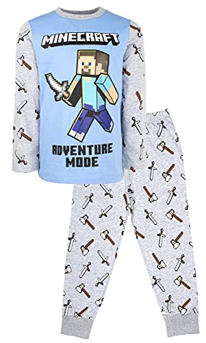 Minecraft - Long Sleeve Pyjama Set Boys Pyjamas - 100% Cotton - Boys Pjs - Steve Adventure Mode Pyjama Set Clothes Birthday Boy Gifts - Age 11-12 Years Blue/Grey