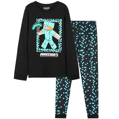 Minecraft Boys Pyjamas Set Lounge Wear Long Top or T-Shirt and Bottoms Teenagers Kids PJs 5-14 Years Gifts for Boys (Black, 9-10 Years)