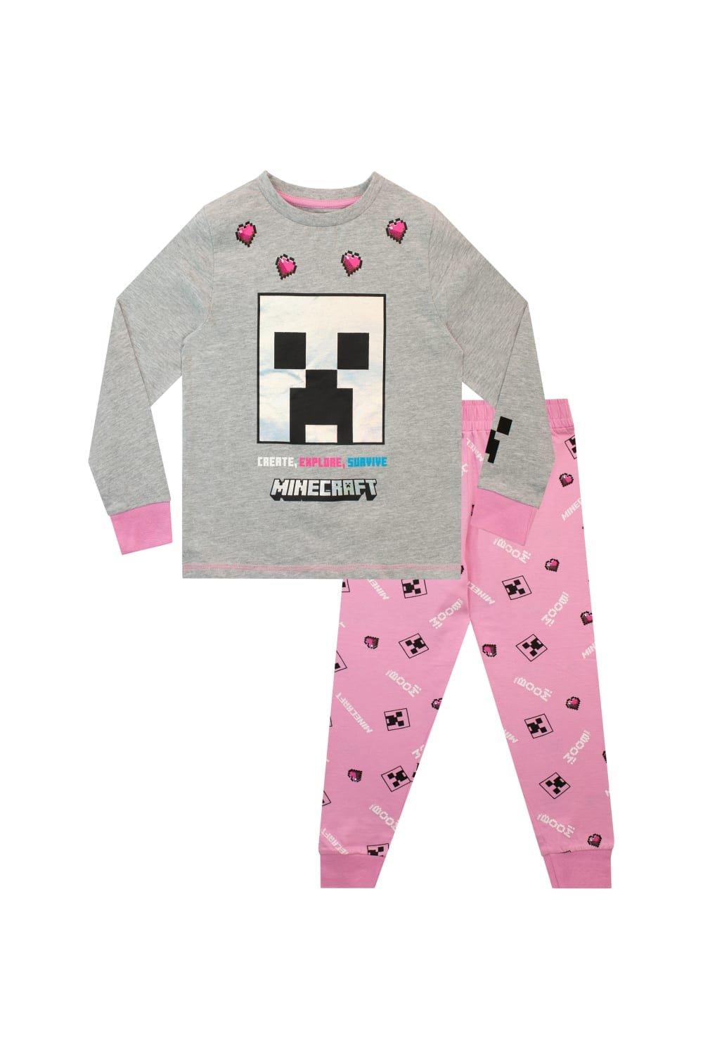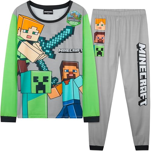 Get Trend Minecraft Boys Pyjamas Set, Long PJs for Kids & Teens, Creeper Loungewear Soft Nightwear, Gamer Gifts for Boys (6-7 Years, Grey Minecraft)
