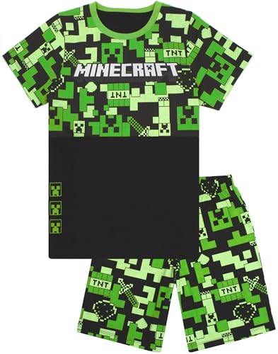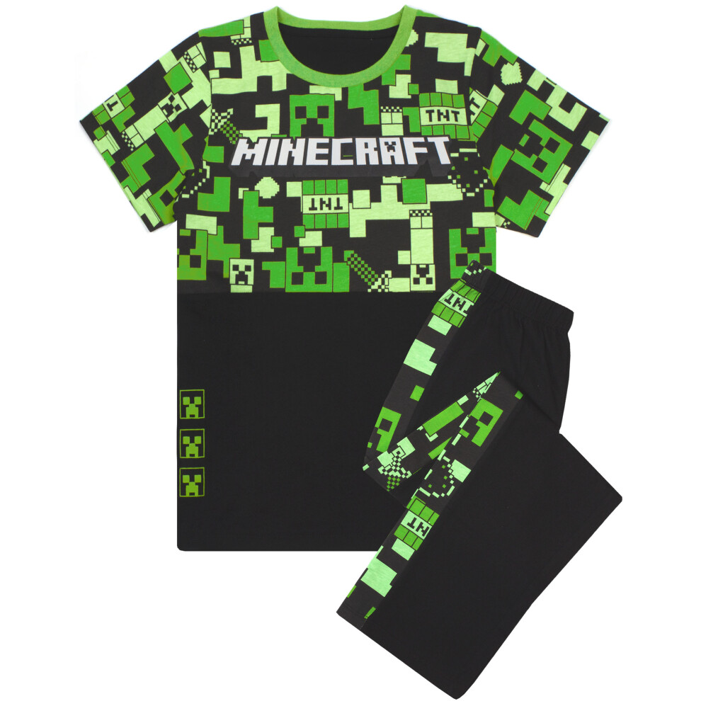 Minecraft Pyjamas For Boys | Kids Long Or Short Bottoms Options & Gamer T-Shirt | Childrens Creeper PJ Set Merchandise Gifts 8-9 Years