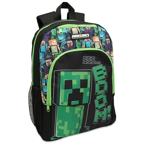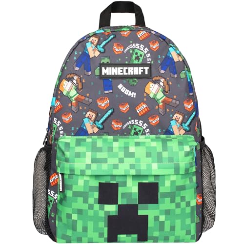 Minecraft School Backpack for Boys and Girls Large A4 Multicompartment Rucksack Travel Bag with Mesh Pocket and Adjustable Padded Shoulder Straps