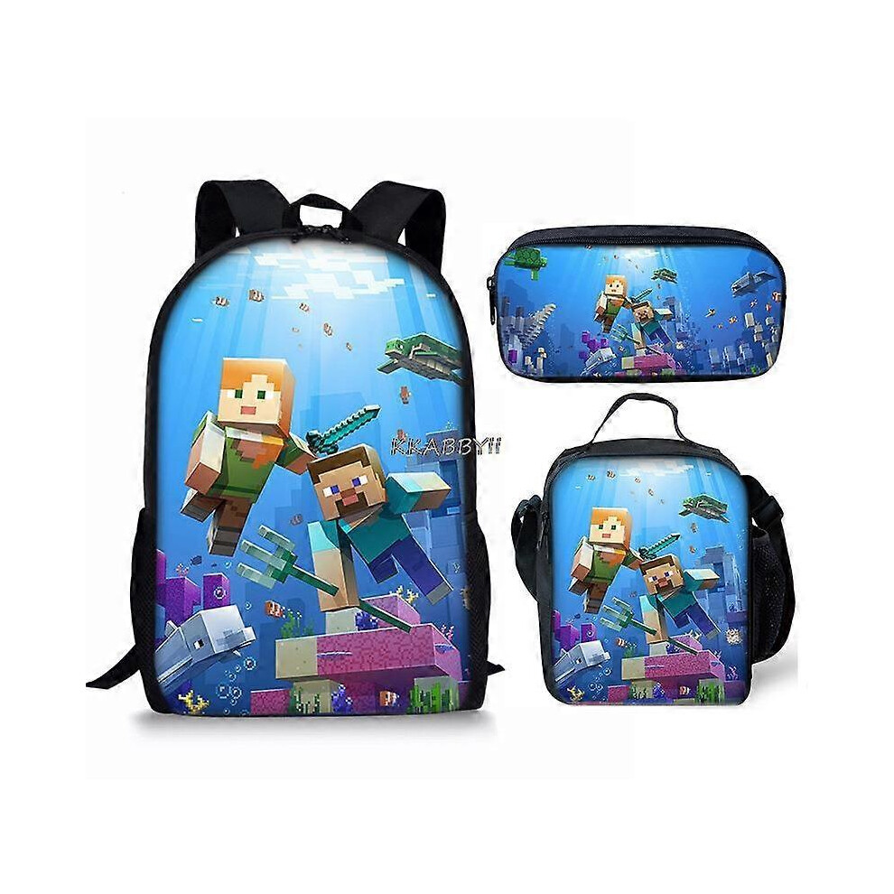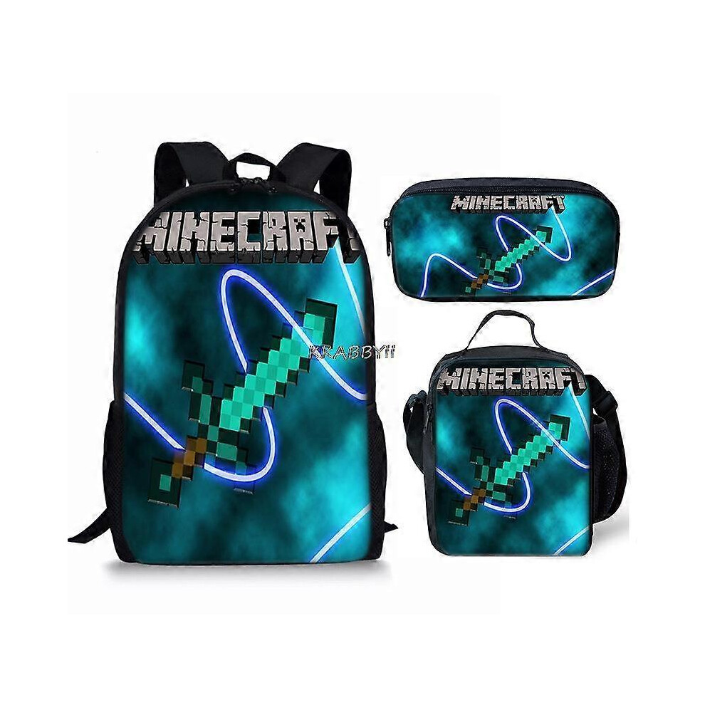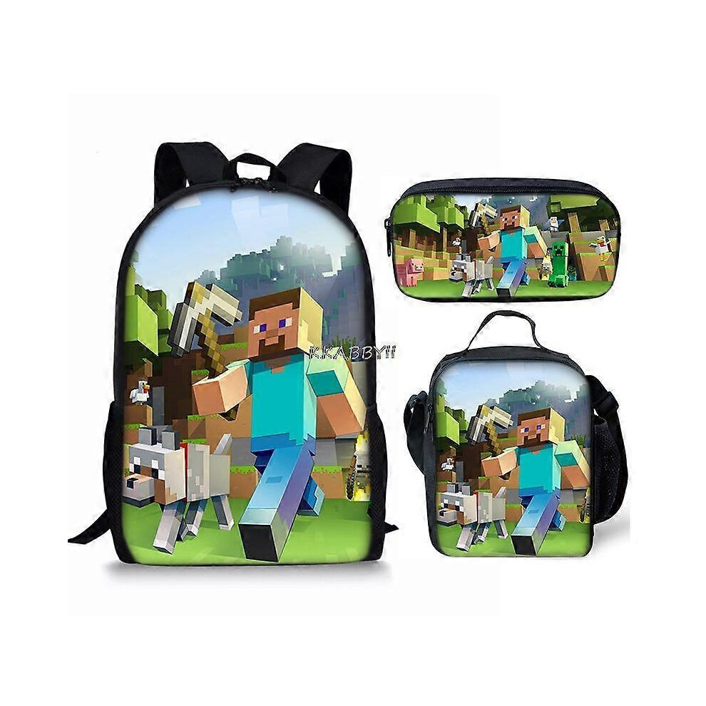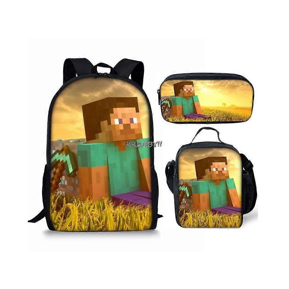 3 Pcs/set Minecraft Game 3d Print Backpack Kindergarten Bookbag Children Start School Gift Rucksack+lunch Bag+pen Bag