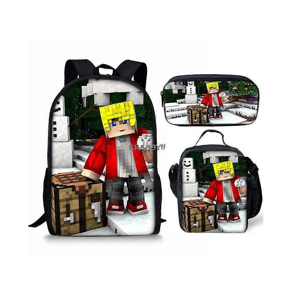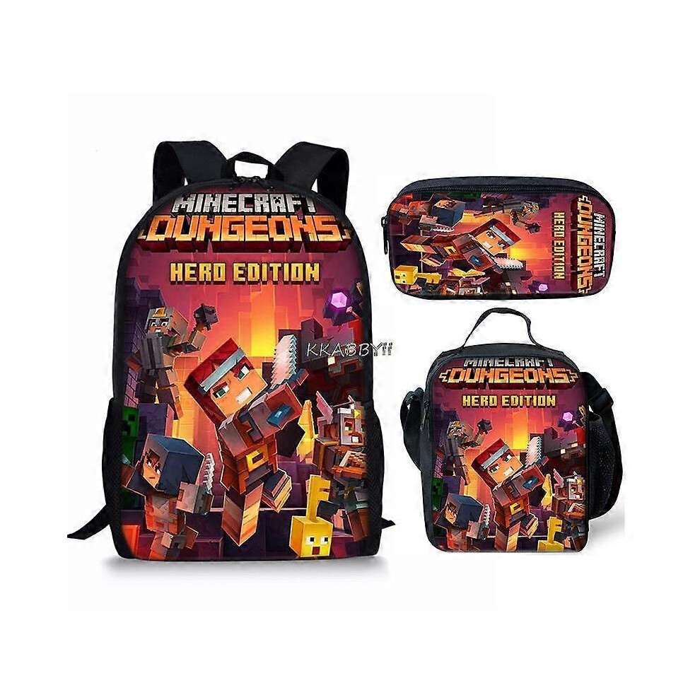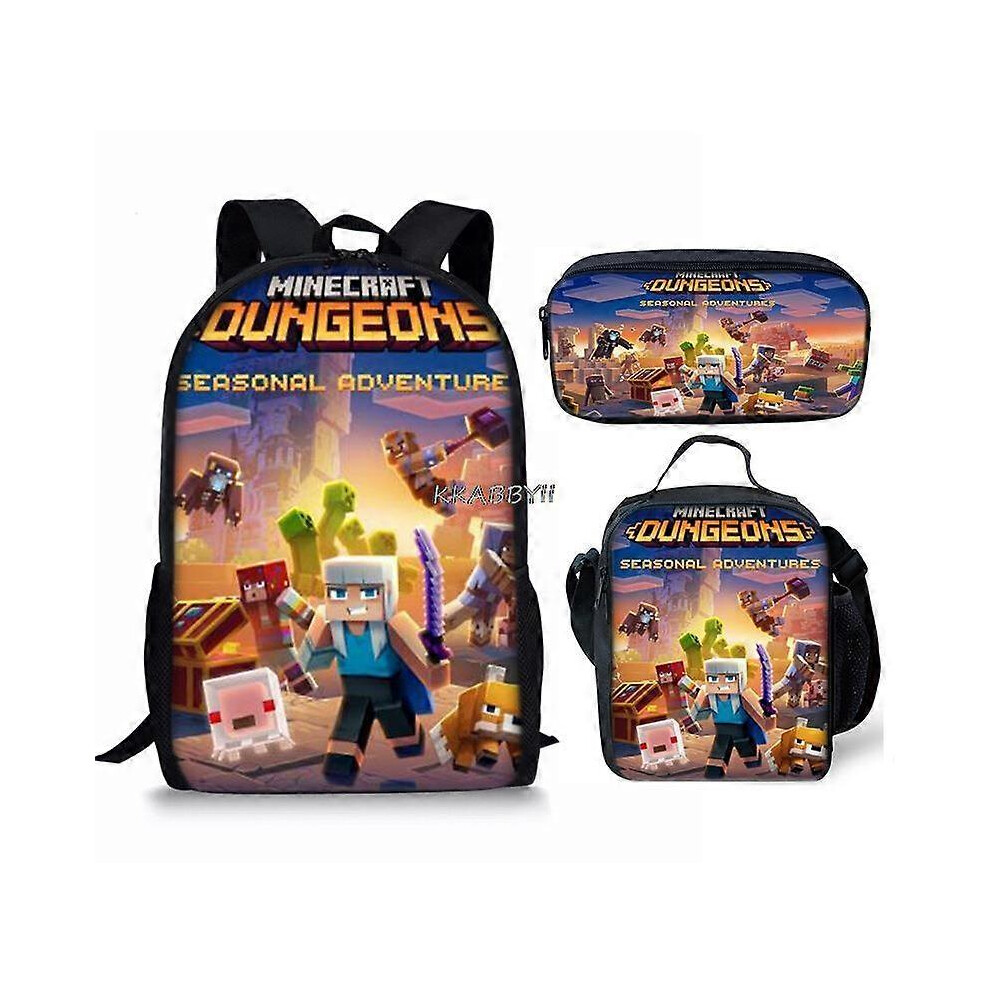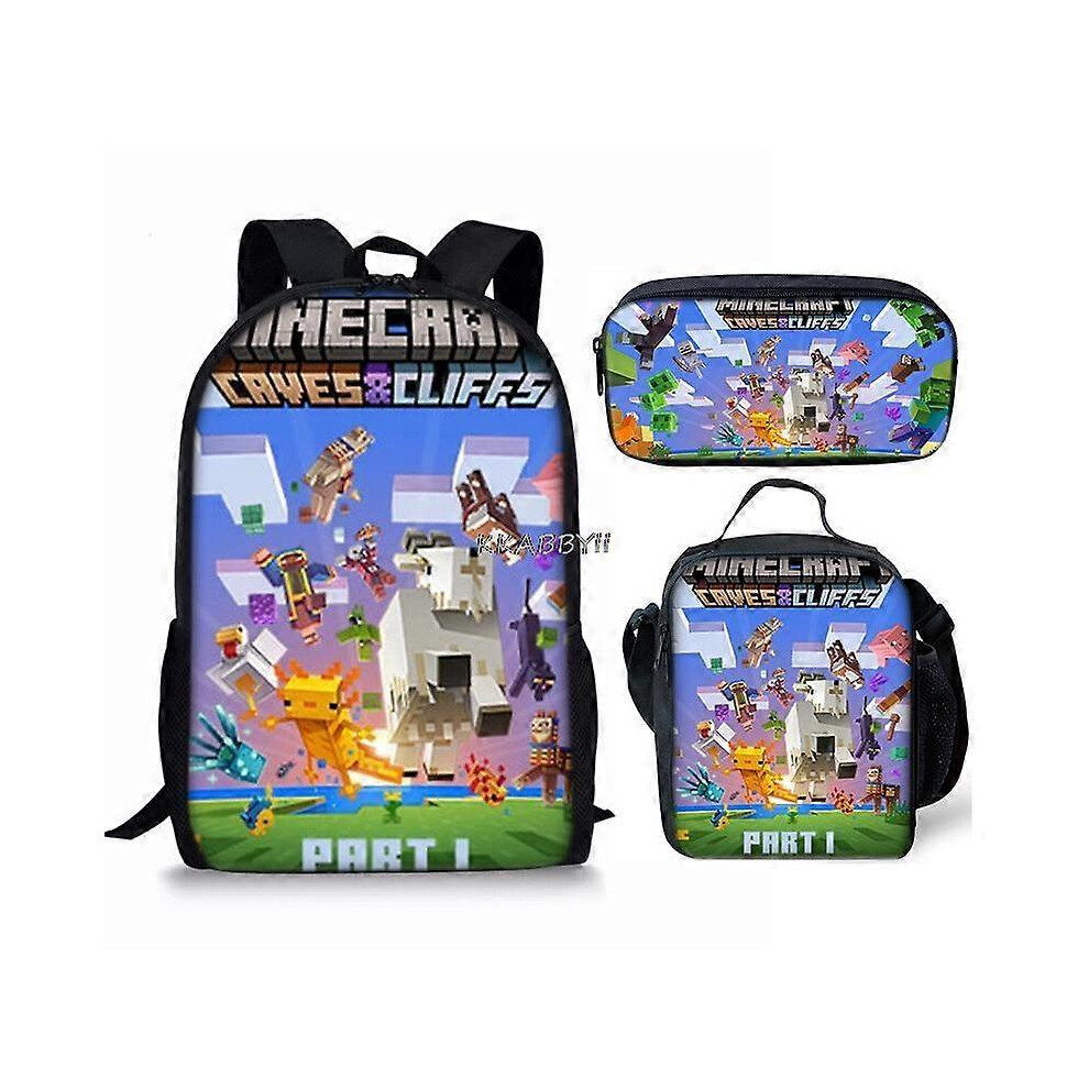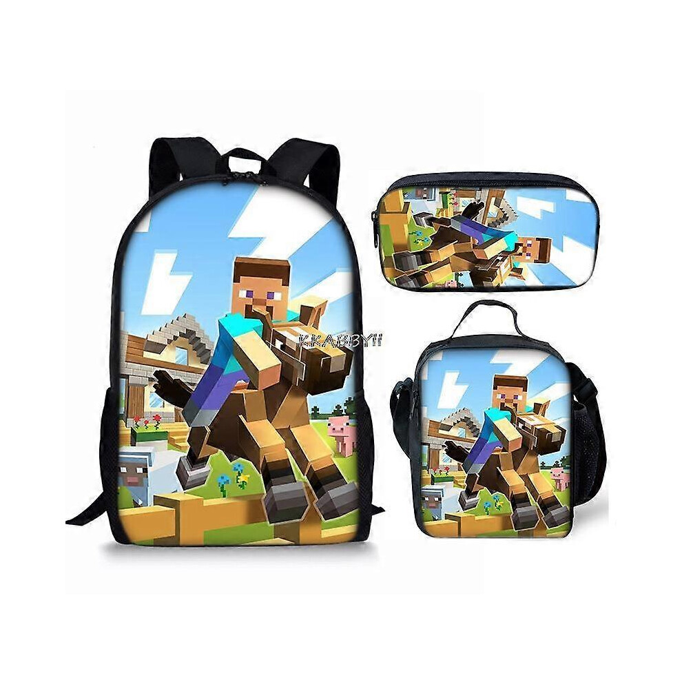 3 Pcs/set Minecraft Game 3d Print Backpack Kindergarten Bookbag Children Start School Gift Rucksack+lunch Bag+pen Bag