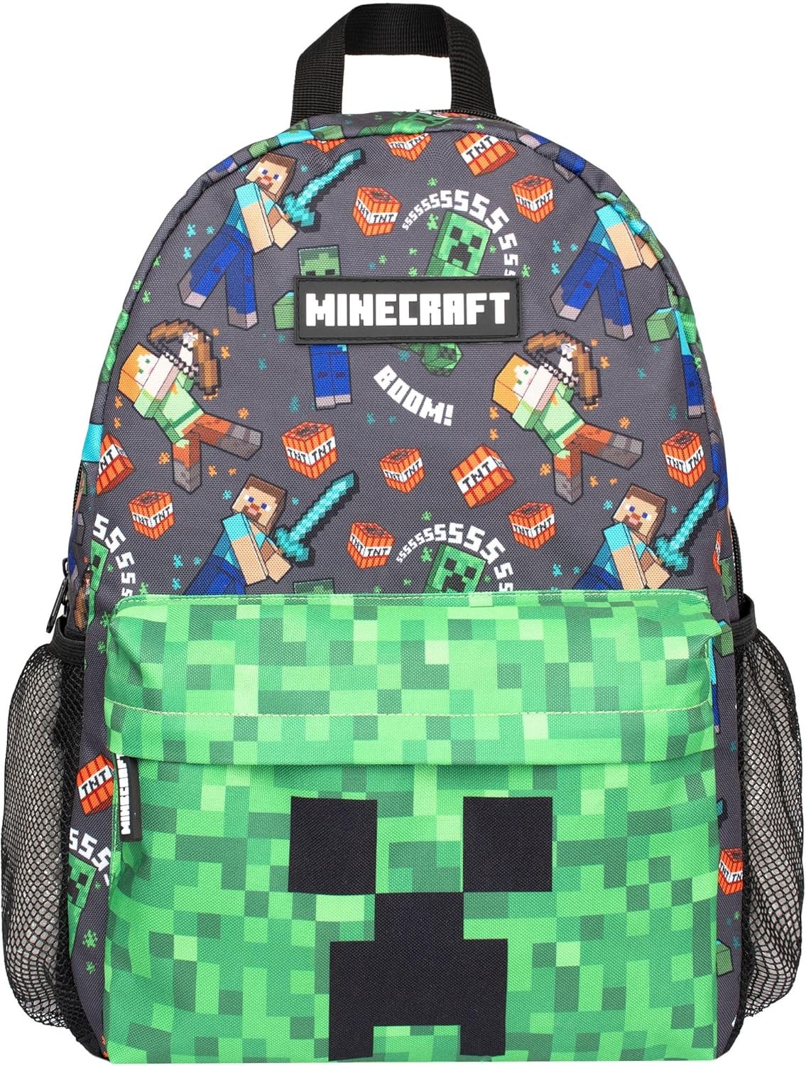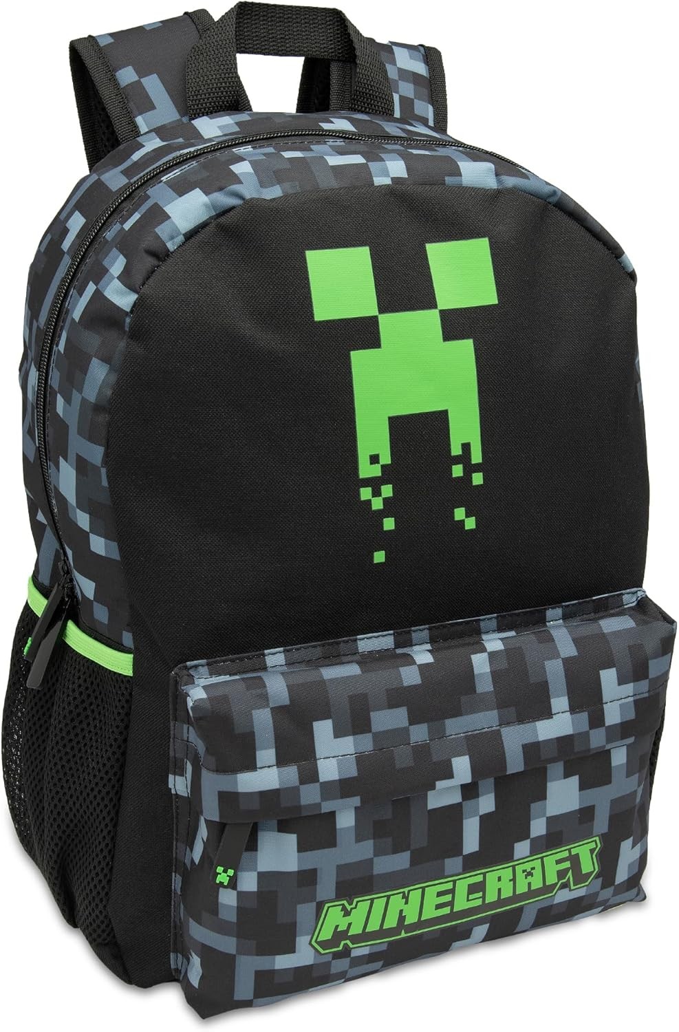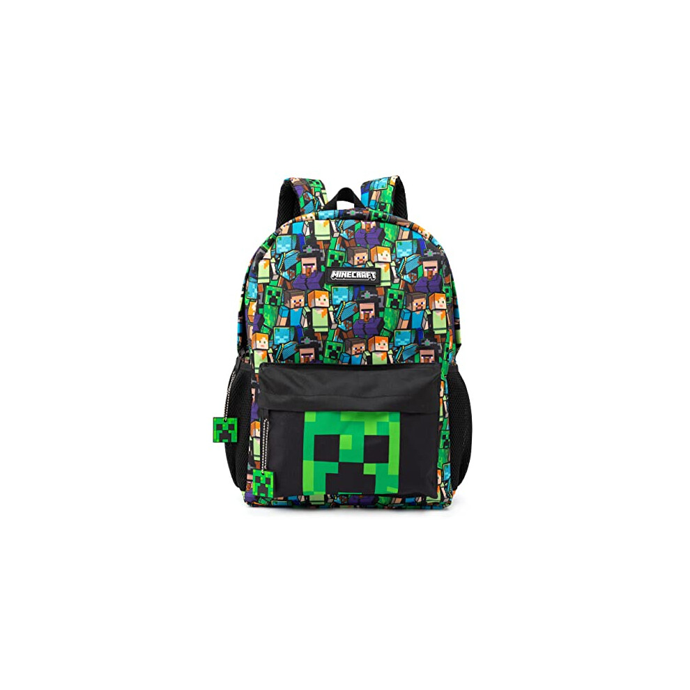 Minecraft Unisex Kids Backpack Set | Rucksack Options Creeper TNT Zombie Skeleton Enderman Sprites Villains | Zip-Up & Hook Closure | Gamer Back to School Essentials Merch
