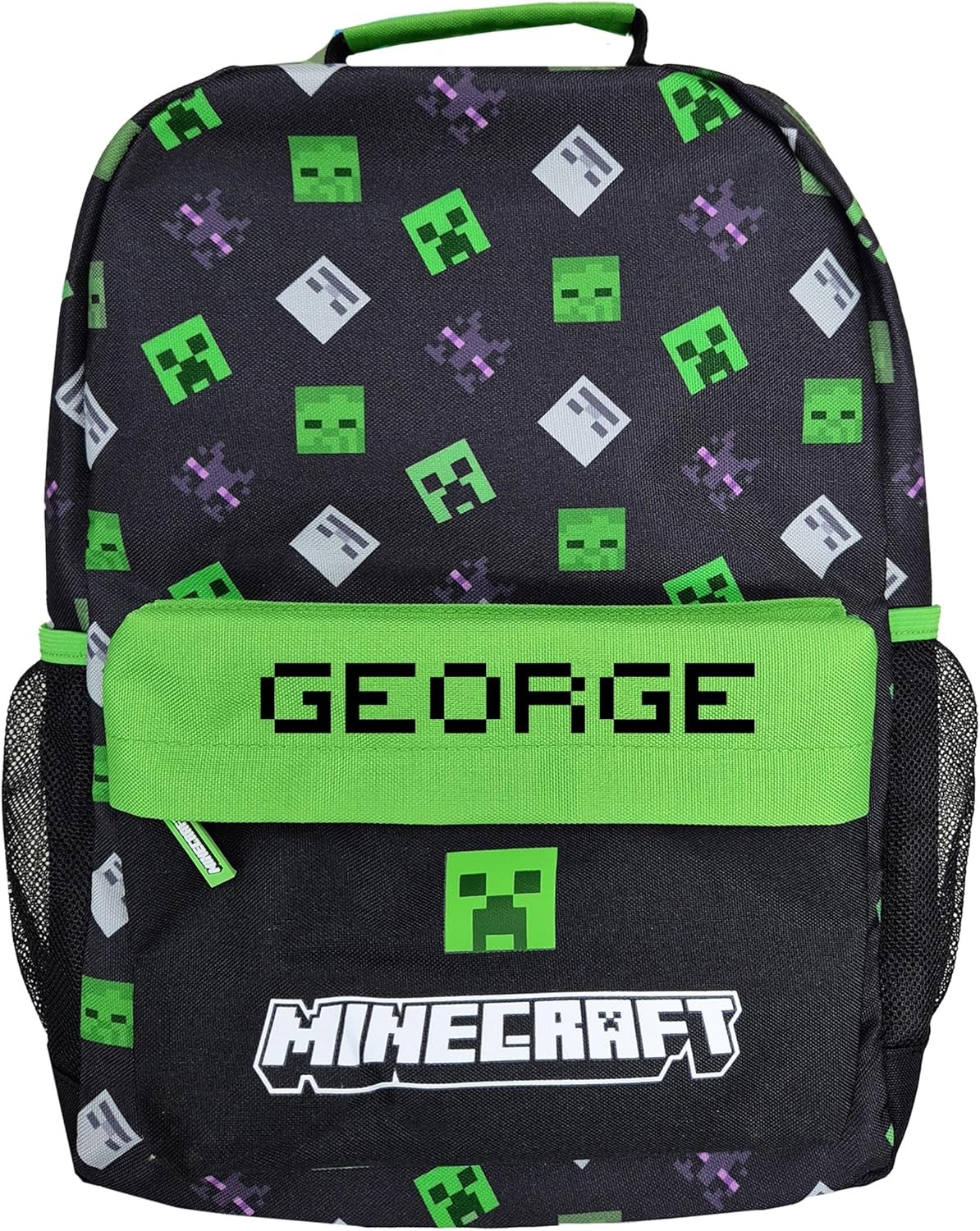 Minecraft Personalised School Backpack for Kids Large A4 2 Compartments Rucksack Travel Bag with Mesh Pockets and Adjustable Padded Shoulder Straps