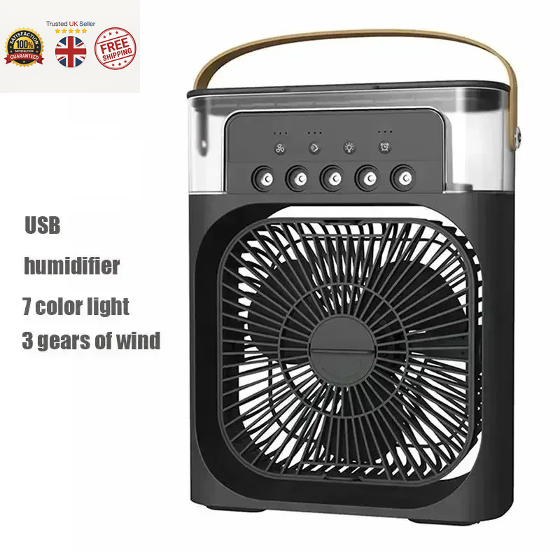 Air Conditioner Humidifier 2 Cold Mists 5 Speeds Fan 7 LEDs Mini Air Cooler With