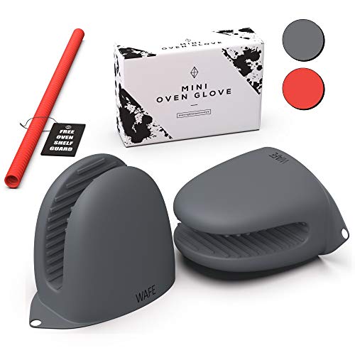 WAFE Mini Oven Gloves for Air Fryer - 2 Silicone Finger Gripper Kitchen Mitts - Heat Resistant Pinch Covers for Cooking, BBQ, Grilling - One Size Fits All Double Hand Pot Holder w/Oven Rack Protector