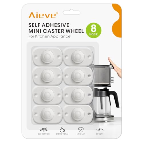 Aieve Wheels for Kitchen Appliances, 8 Pack Self Adhesive Mini Casters, 360 Degree Swivel Rollers for Coffee Machine, Air Fryer, Cooker