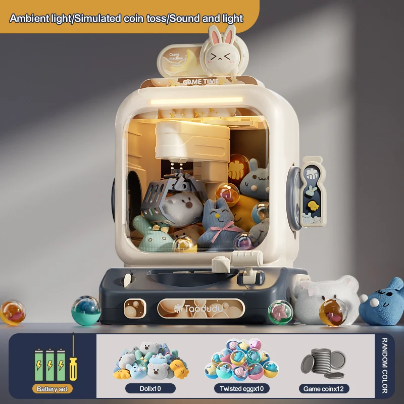 SKKWJEGE DIY Electric Claw Machine Mini Arcade Machine for Children Birthday Gifts, Blue Rabbit, 20 dolls 10 twisted eggs