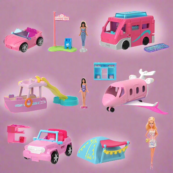 Barbie Mini Land Playsets Doll & Toy Vehicle Sets Bargain Bundles - (6 Piece Bundle)
