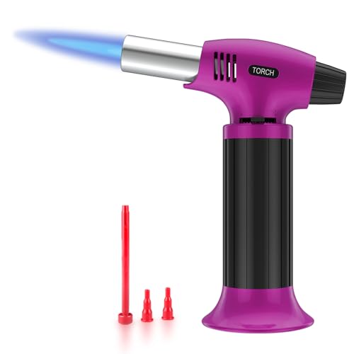Blow Torch for Cooking, Refillable Kitchen Blow Torch, Mini Torch Lighter with Safety Lock and Adjustable Flame for Desserts, Creme Brulee, BBQ, Purple-Black (Gas Not Included)