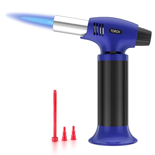 Blow Torch for Cooking, Refillable Kitchen Blow Torch, Mini Torch Lighter with Safety Lock and Adjustable Flame for Desserts, Creme Brulee, BBQ, Blue-Black (Gas Not Included)