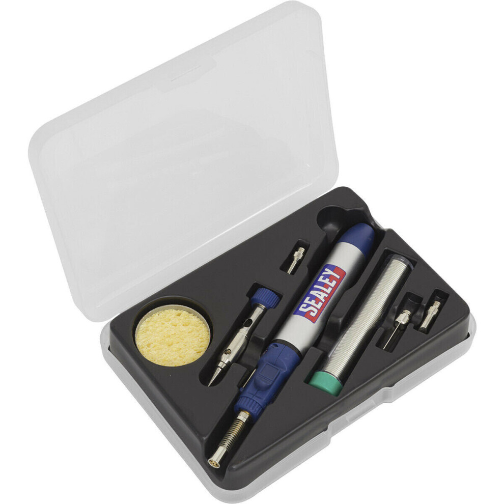 7pc Mini Butane Soldering Blow Torch Set - Adjustable Tips & Stand - 1300ÃC Heat