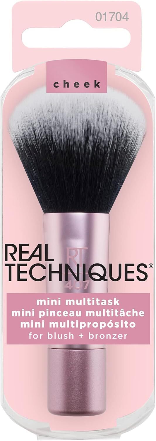 Real Techniques Mini Multitask Makeup Brush, For Blush, Bronzer and Powder, Face Brush with Custom-Cut Synthetic Bristles, For Loose and Pressed Powder, Travel Sized, Vegan and Cruelty-Free, 1 Count