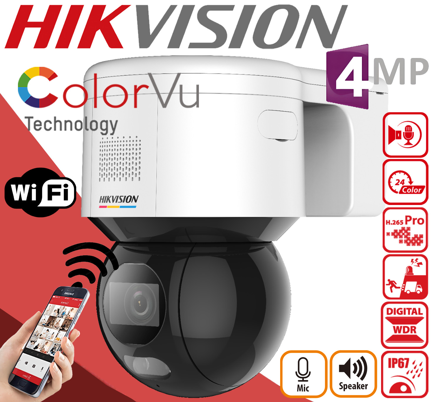 Hikvision ColorVu Mini PTZ WiFi PoE IP Network CCTV Security Camera 2-Way Audio