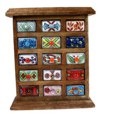 Wooden Mini Chest, 15 Ceramic Drawers