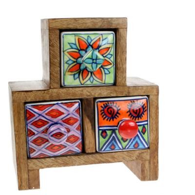 Wooden Mini Chest, 3 Ceramic Drawers