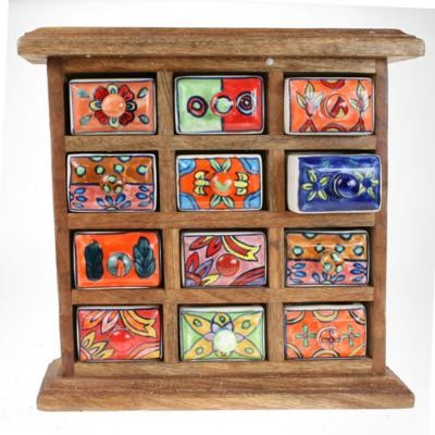 Wooden Mini Chest, 12 Ceramic Drawers
