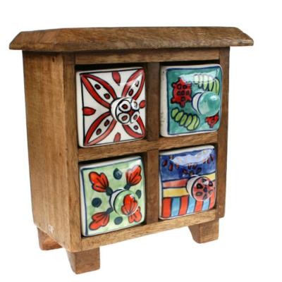 Wooden Mini Chest, 4 Ceramic Drawers