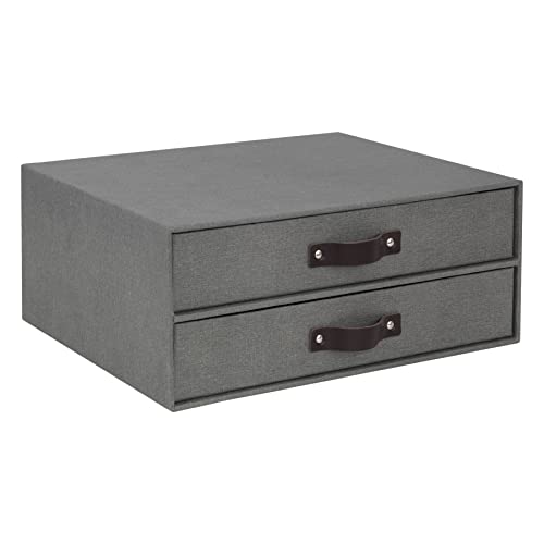 Bigso Box of Sweden Mini Desk Chest of Drawers for Documents and Office Supplies - Desk Organizer with 2 Drawers - Box with Drawers made of Wood Fiber and Paper - Grey