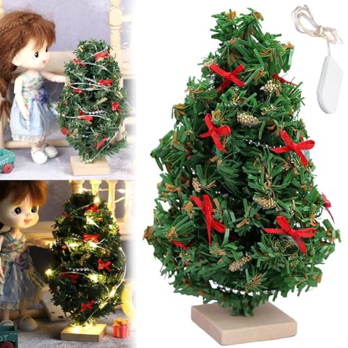 Artificial Christmas Trees,1:12 Scale Dollhouse Mini Christmas Tree,Realistic Doll House Ornaments,Miniature Artificial Christmas Tree with Light for Dollhouse Decoration and Gnome Door Accessories