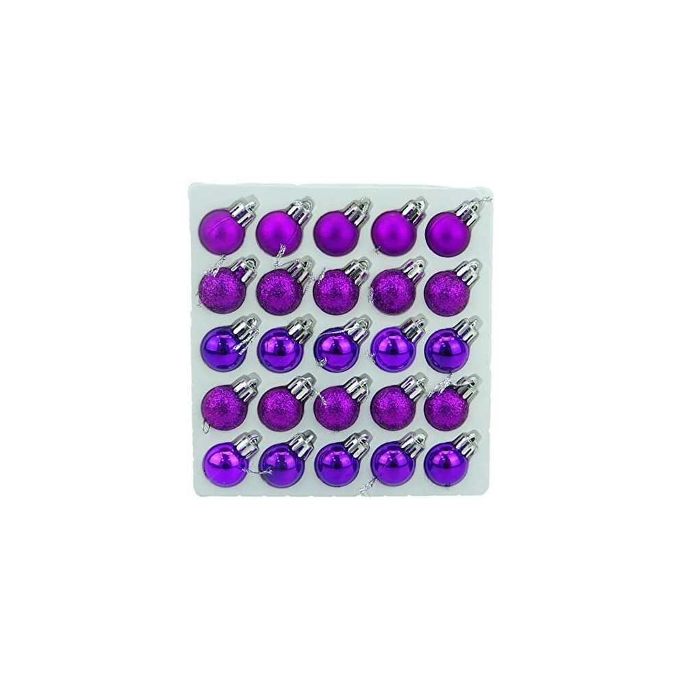 Christmas Concepts Pack of 25 - 25mm Mini Christmas Tree Baubles - Shiny, Matte & Glitter Decorated Baubles (Purple)