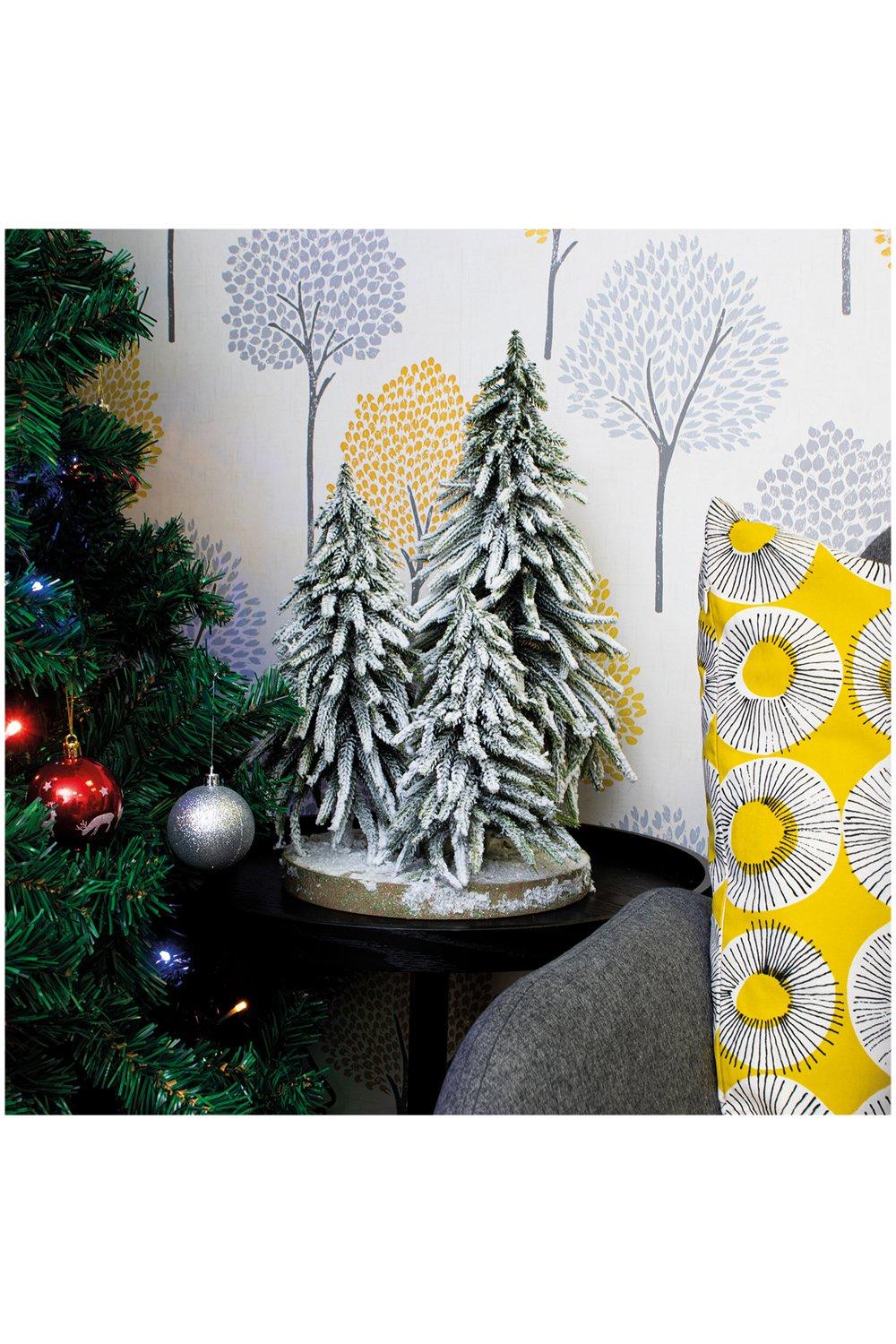 Decorative Snow Topped Mini Christmas Tree Display on Plinth
