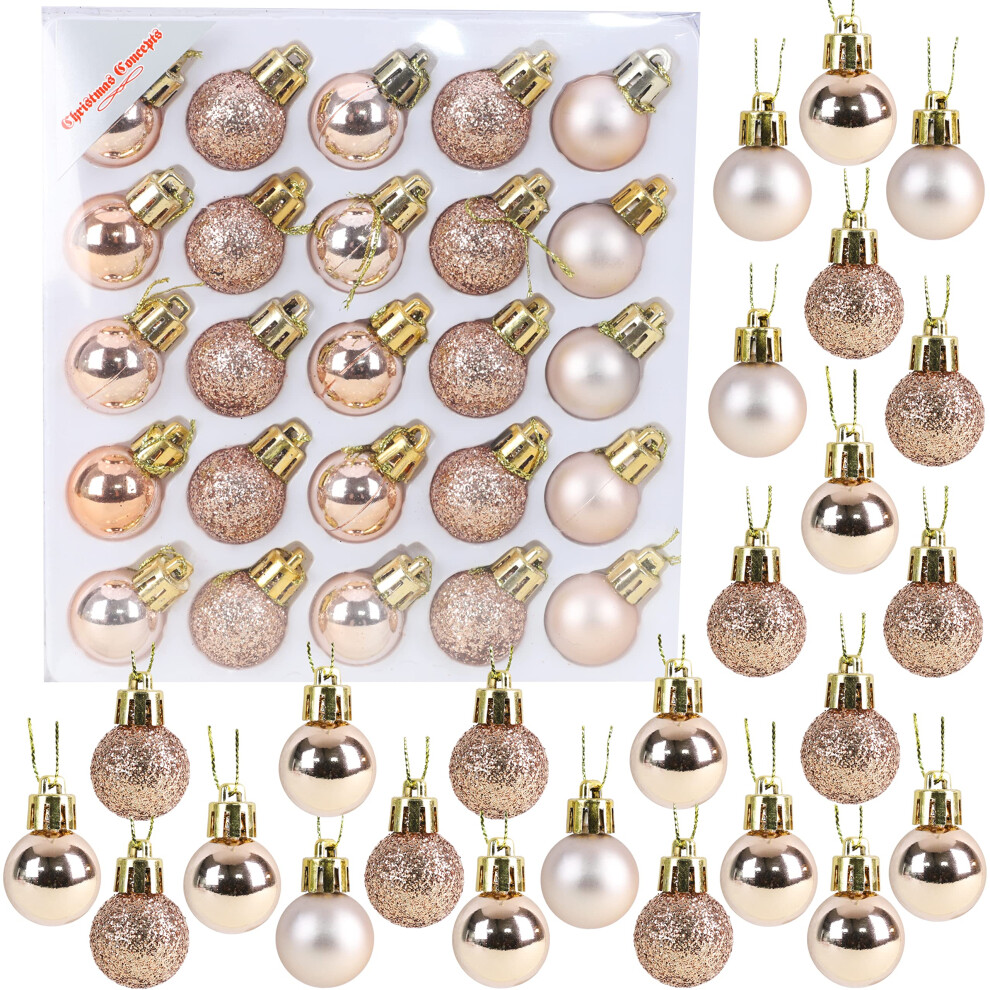 Christmas Concepts Pack of 25-25mm Mini Christmas Tree Baubles - Shiny Matte & Glitter Decorated Ornaments (Champagne)