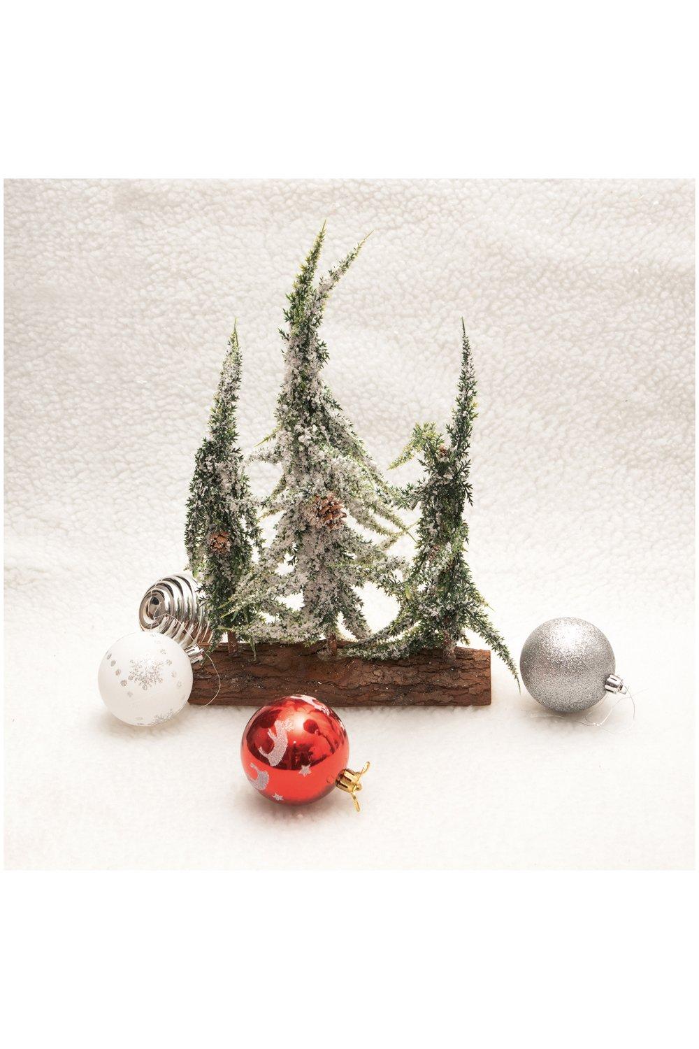 Decorative Snow Topped Mini Christmas Tree Display on Log