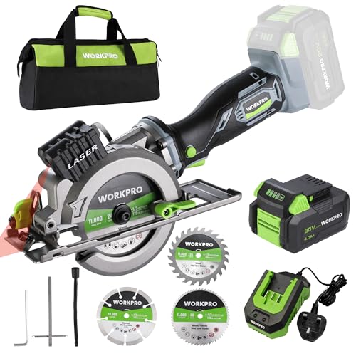 WORKPRO 20V Mini Circular Saw, Cordless Circular Saws with 4.0Ah Battery & Fast Charger, 115mm Compact Electric Circular Saw for Wood, Tile & Plastic Cutting
